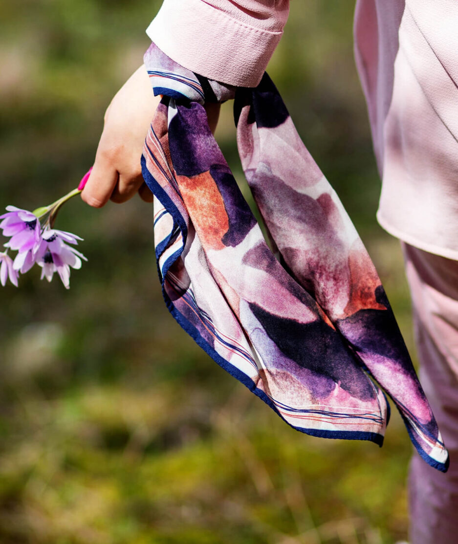 Αυτό το υπέροχο φουλάρι είναι ψηφιακά τυπωμένο σε λεπτό μετάξι. Το σχέδιο είναι εμπνευσμένο από ρομαντικά μοτίβα της φύσης. Είναι απίστευτα ευπροσάρμοστο. Μπορεί να φορεθεί με μουντά ή φωτεινά χρώματα, σκούρα ή ελαφριά. Μπορεί να φορεθεί με ένα επίσημο φόρεμα ή το αγαπημένο σας τζιν.